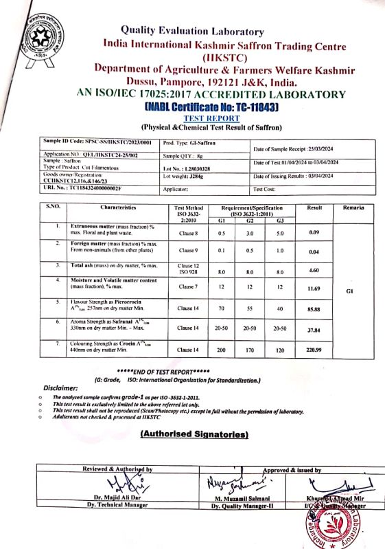 | Form | Whole Threads (Stigmas) – Grade 1 |